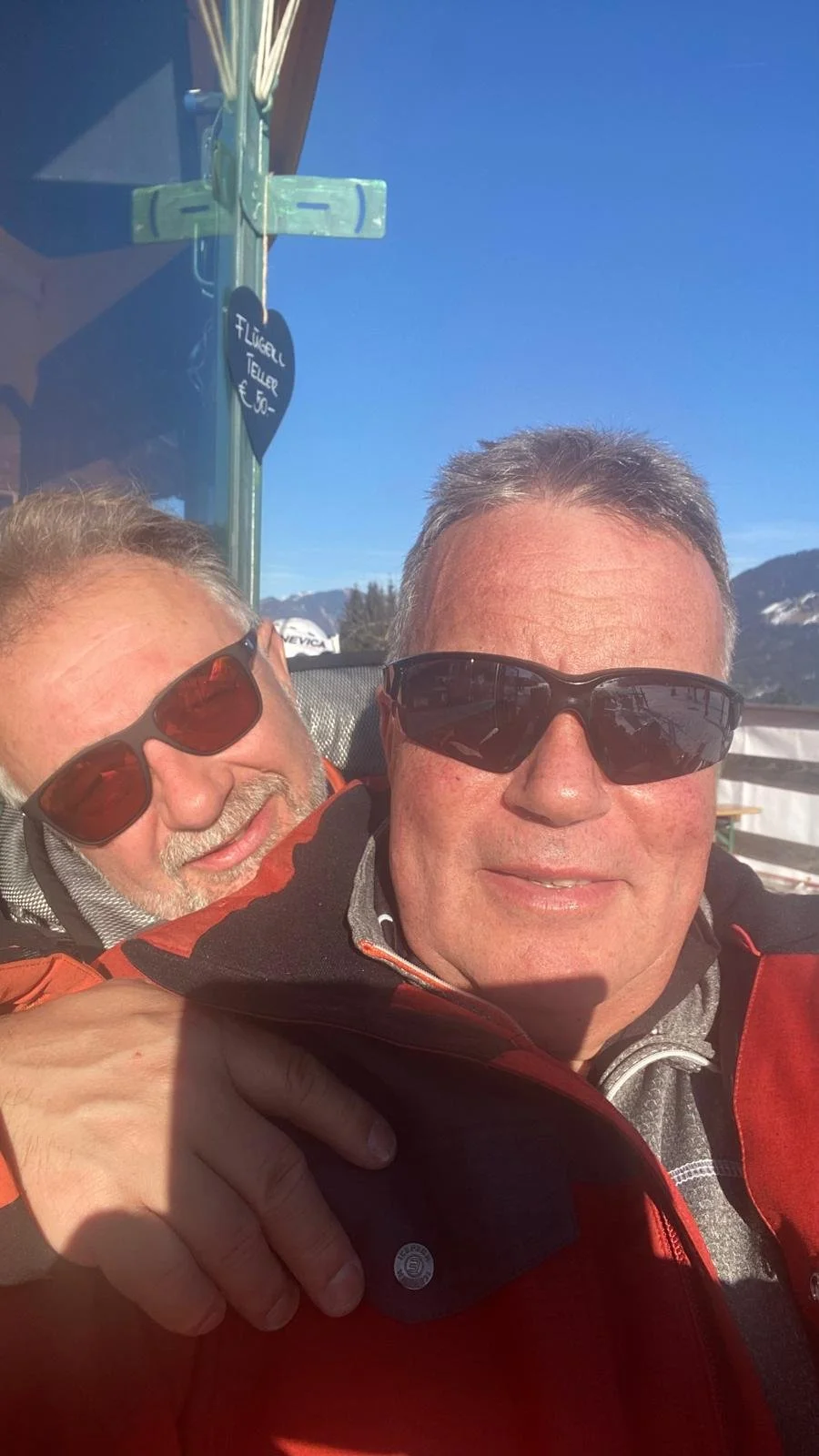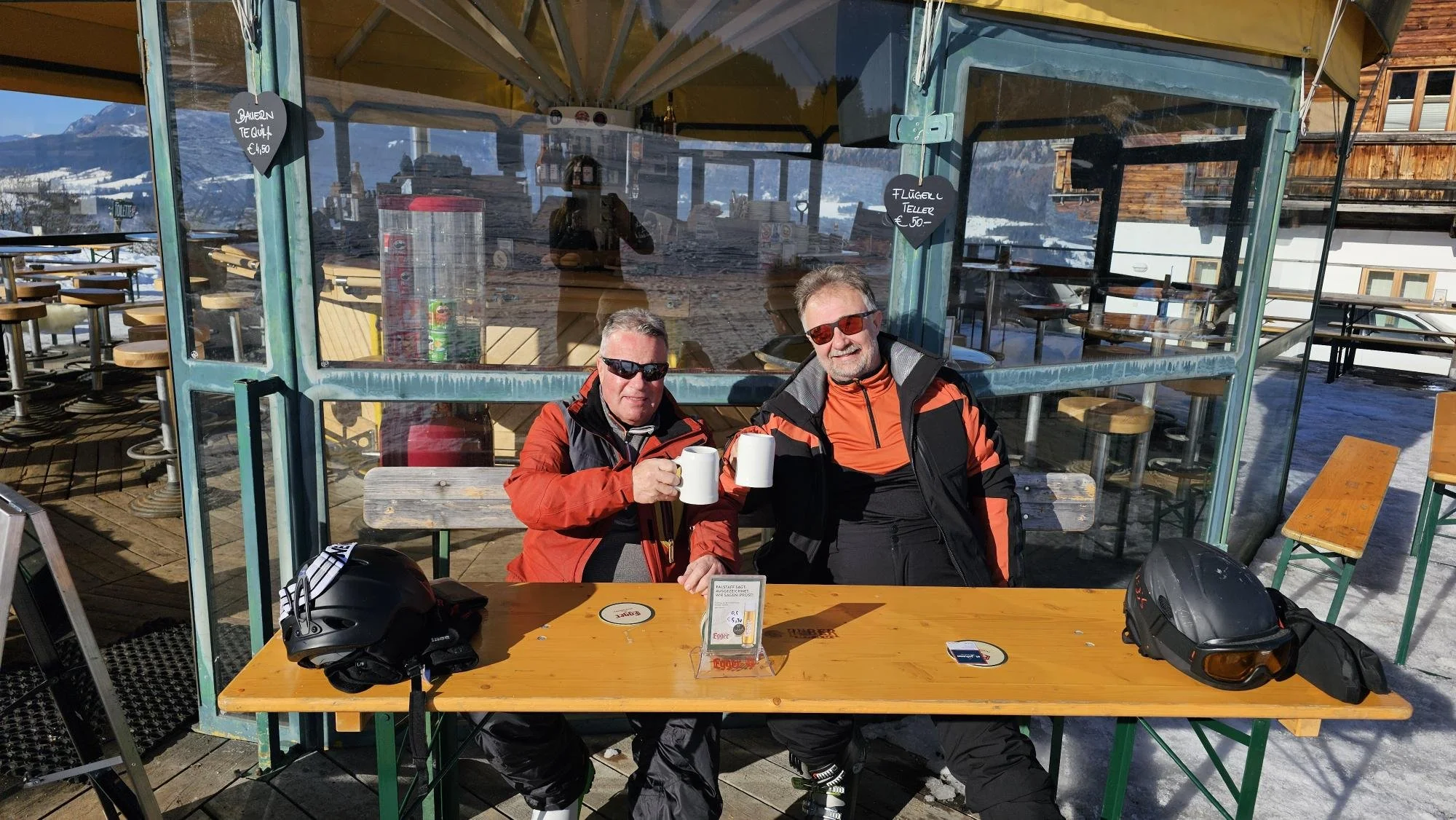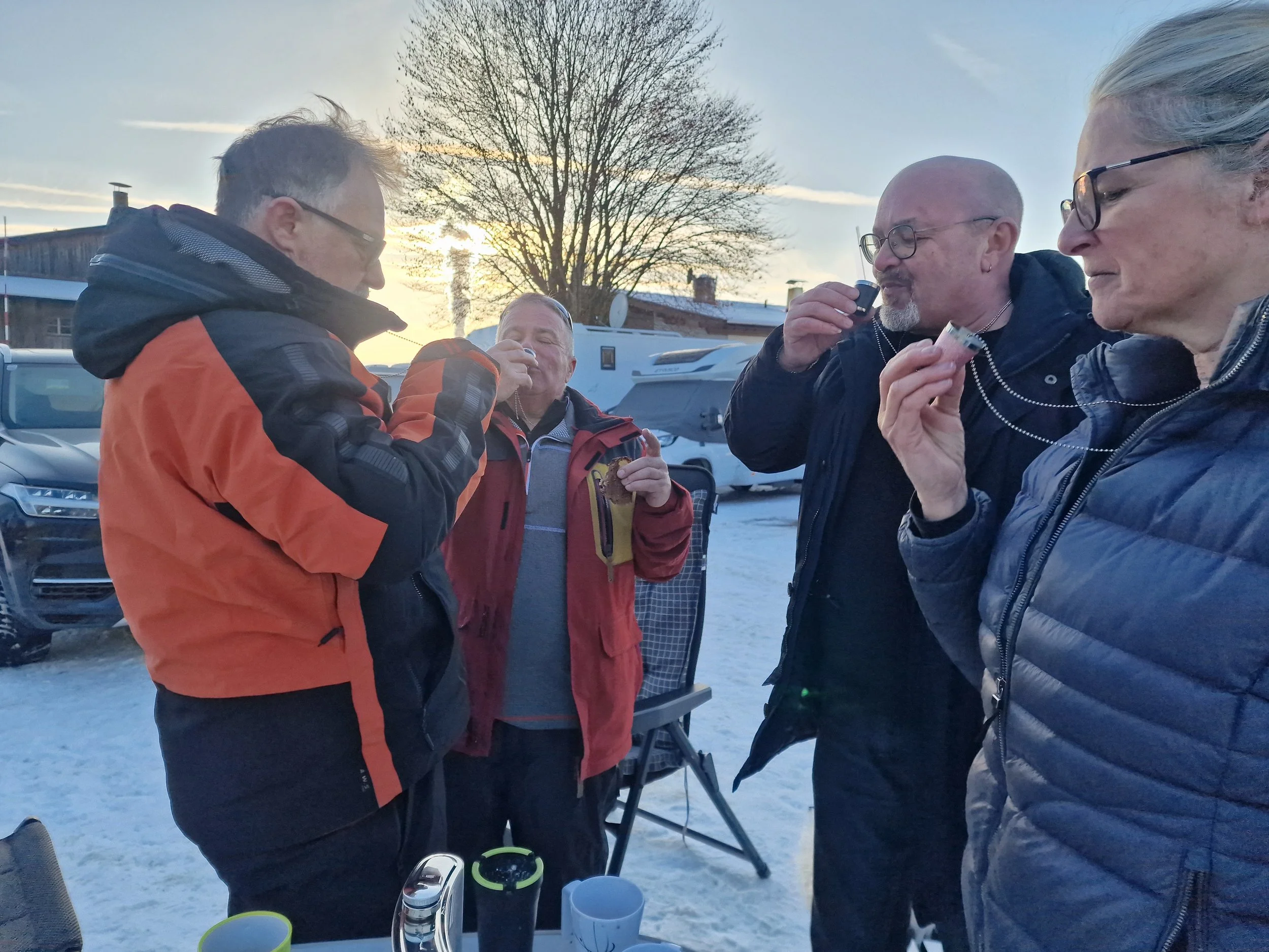 Ulrike empfing die Teilnehmer im Zelt mit Tee, Glühwein und Gugelhupf. Fritz und Walter gingen die Schipisten testen.