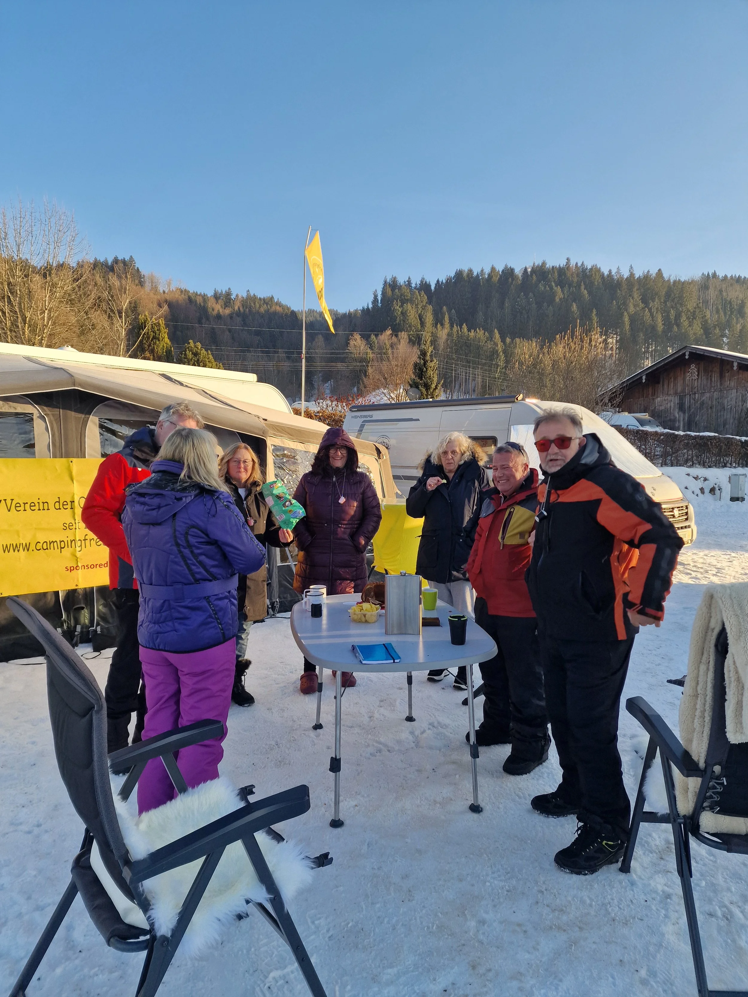 /Am Freitag, den 23.01.2025 trafen wir am Campingplatz Michelnhof in St Johann in Tirol zusammen. Die Teilnehmen waren Ulrike & Fritz (Vorstand und Veranstalter) Manfred (Vorstand) & Herta, Rudi & Margot, Walter & Sonja, Bernd & Ingrid und Jolanda.