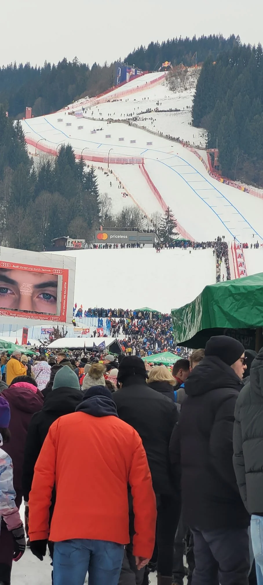 Nach den Rennen sind wir mit der Masse in die Kitzbüheler Innenstadt. Es waren so viele Leute das kann man nur erahnen. Christoff der Sohn von Brunnerl und ein Freund von Manfred, diesen besuchten wir als erster bei seinen Burger-Stand. Danach sind wir ins neue Greif, das ist ein Gasthaus neben dem Casino mitten in der Innenstadt, wo wir einen der heiß begehrten Tische reserviert hatten. Nach einer sehr guten Pause mit Essen und Trinken ging es wieder in die Innenstadt, wo die Party eine Dimension erreicht hatte, dass wir nur noch staunen konnten, wie gut uns die Stimmung mitnahm. Siehe Bilder. Nach einer Zeit sind Wir ins Zielgelände, wo sich wieder tausende Zuschauer versammelt hatten. Zuerst war die Startnummern Verlosung für den Slalom am nächsten Tag. Dann kam die Siegerehrung. Wahnsinns Stimmung, aber die anschließende Drohnen-Show war einfach gigantisch.